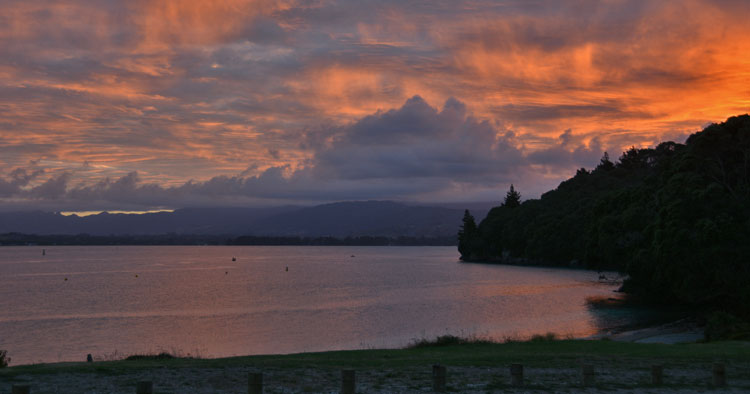 We arrived in mid-winter, having just checked out the ocean beach parking areas where we felt the full blast of the blustery cold weather that was doing everything but rain. Arriving in Anzac Bay was like entering another world - sheltered from the wind, it had its own micro climate.